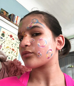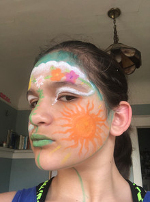 I have been doing face painting since Monday April 6th 2020, and here are some of my creations. I like face painting because it is a way to incorporate yourself into the art that you make and it is a way to show it. I have been doing aerial dance for 6/7 years and it is like my favorite thing ever!!!